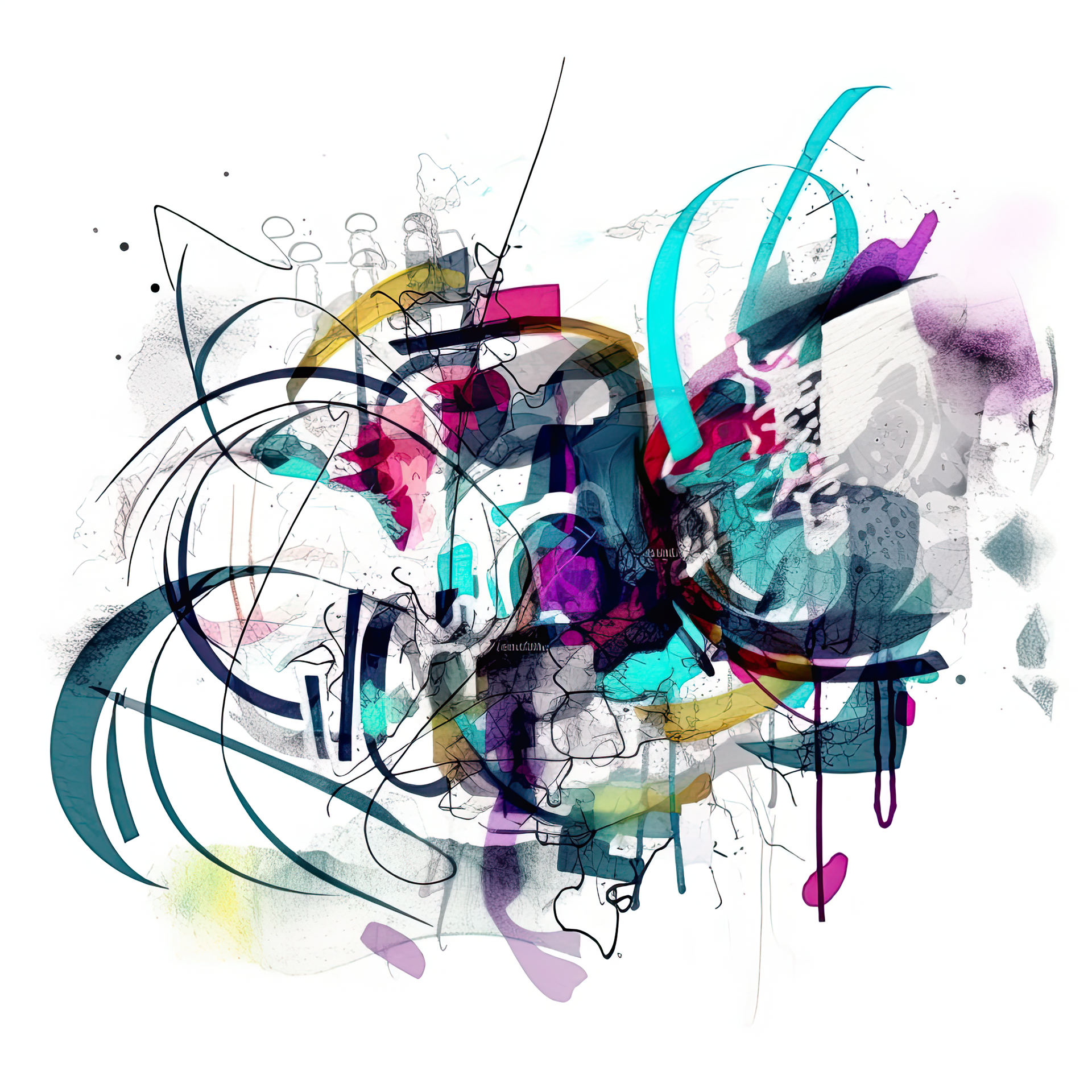 The entanglement of colorful shapes reflects the muddled communication of our era. The vibrant colors resonate and reveal the inherent polarity in our society, seeking harmony, while also exposing the anger and resentment concealed behind our social masks.